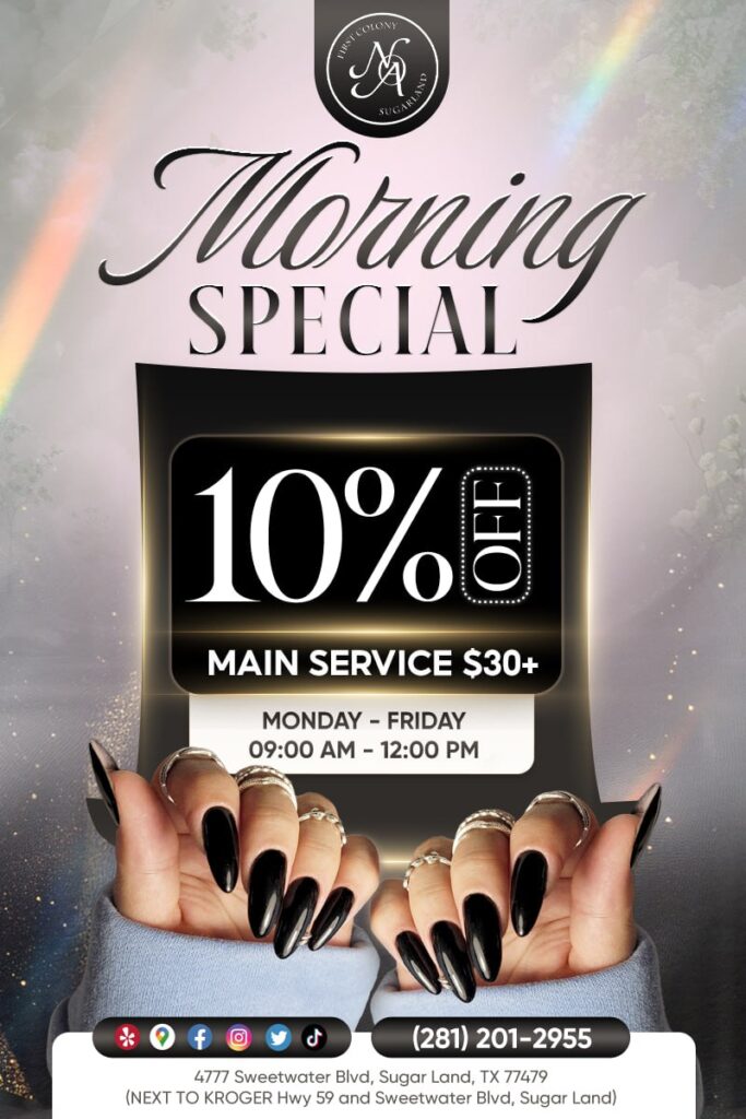 We’re not just a nail salon Sweetwater Blvd; we’re your sanctuary of serenity. Nestled within the hustle and bustle of First Colony, we provide a haven where stress dissolves and rejuvenation blooms. Molding a revolution in the beauty industry, our salon hails from a family of expertise, embracing a culture that’s steeped in professionalism, creativity, and passion. Every brush stroke reflects our commitment to transform routine nail care into an enchanting journey.